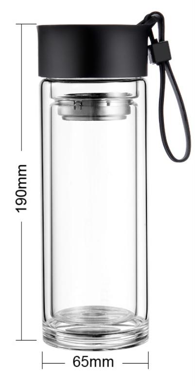 Thể tích: 300ml, kích thước chiều cao 19cm đường kính 6.5cm nhỏ gọn có khay lọc tra và dây xách tiện lợi.