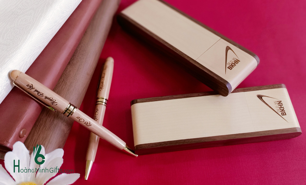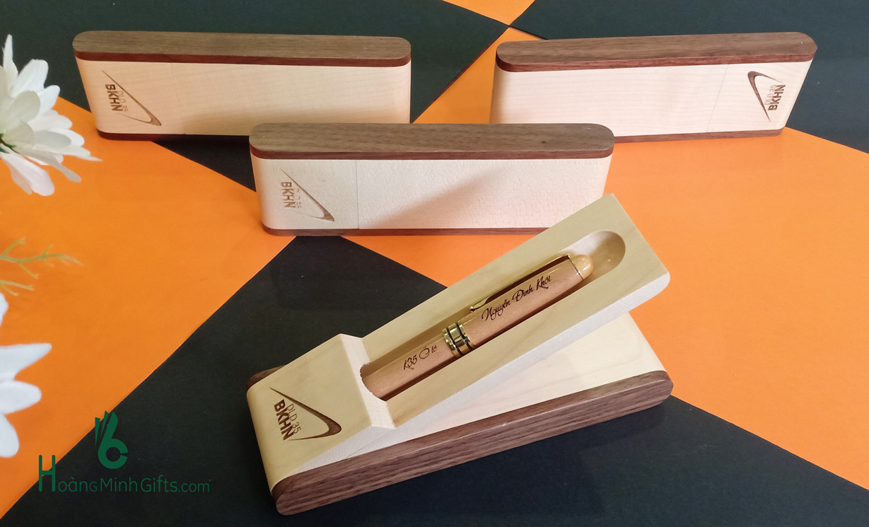 Khắc logo trên hộp bút theo yêu cầu