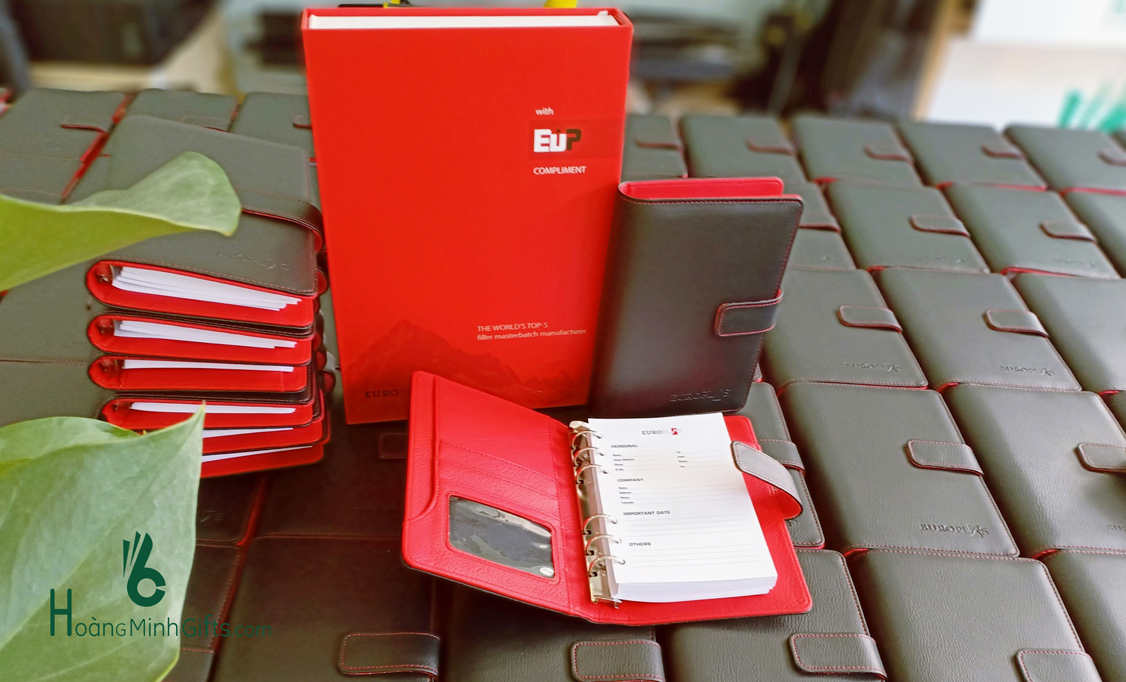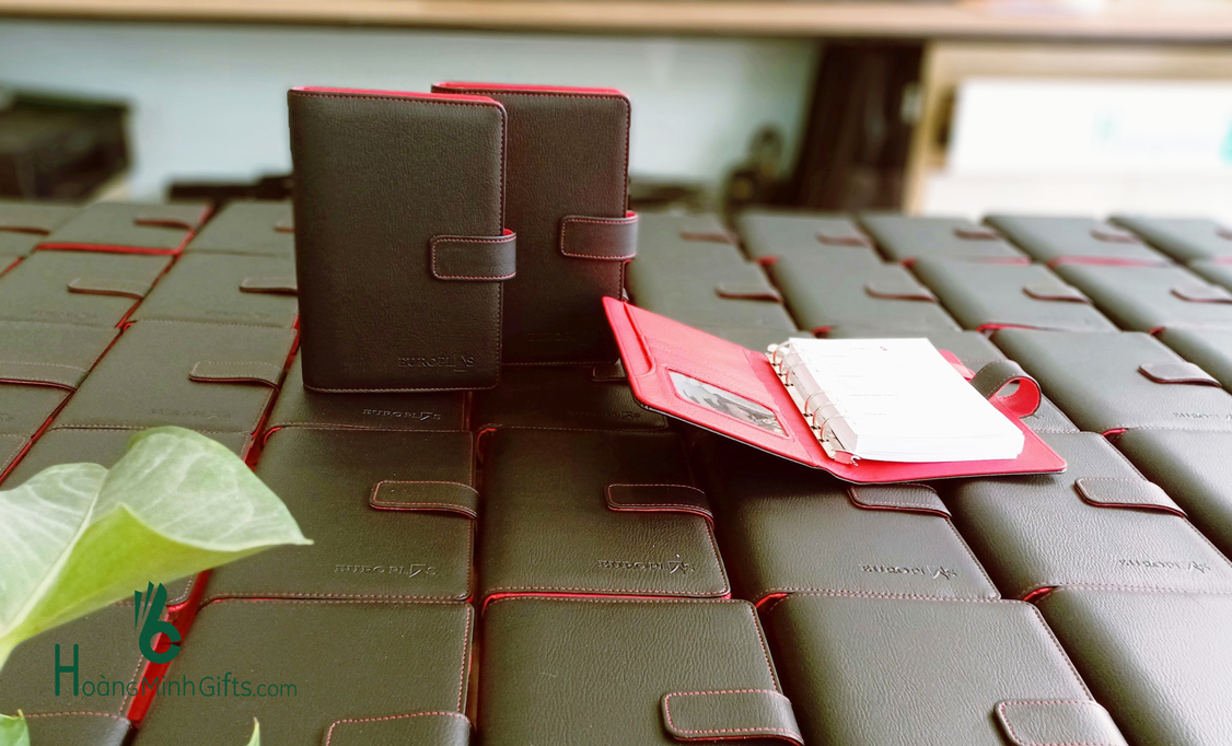 + Sổ da gáy còng a6/ dập chìm logo hoặc khắc logo lên phần kim loại