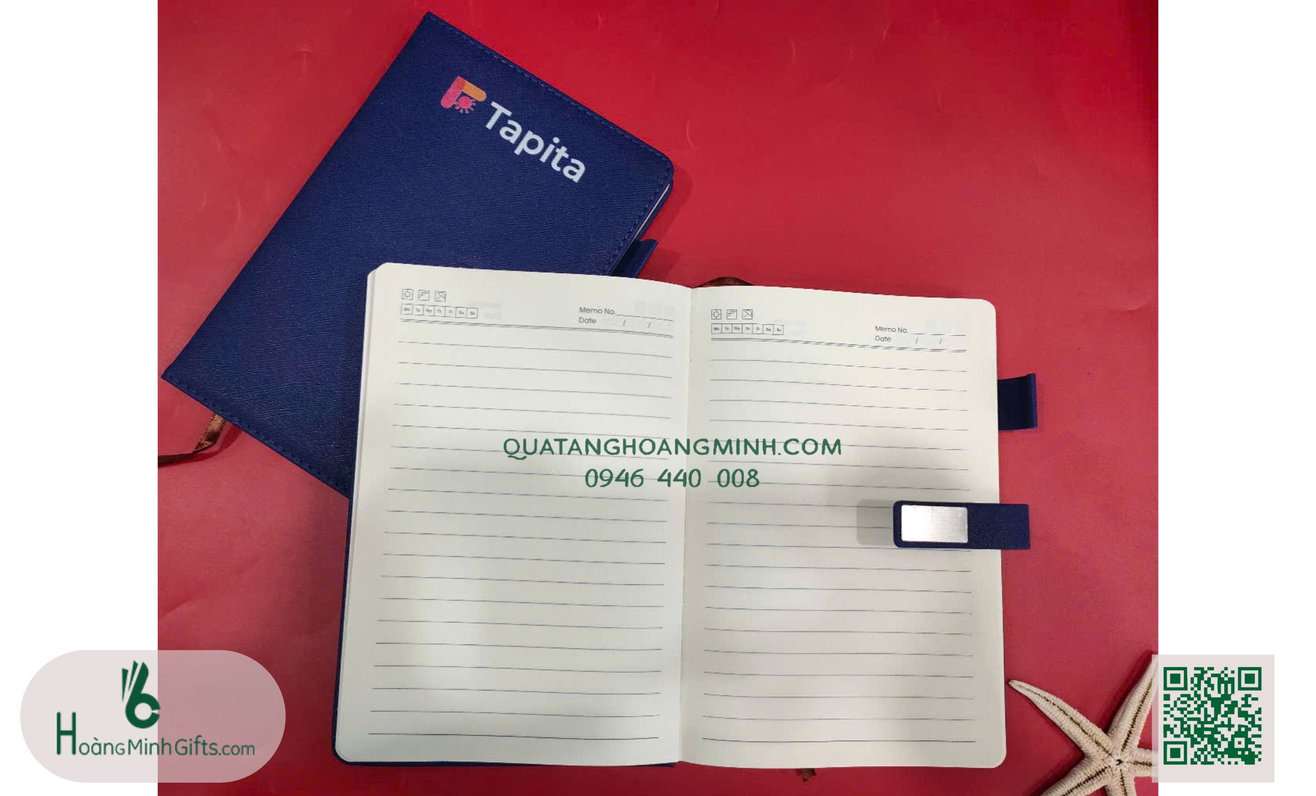 - Sổ da gáy dán in logo theo yêu cầu.