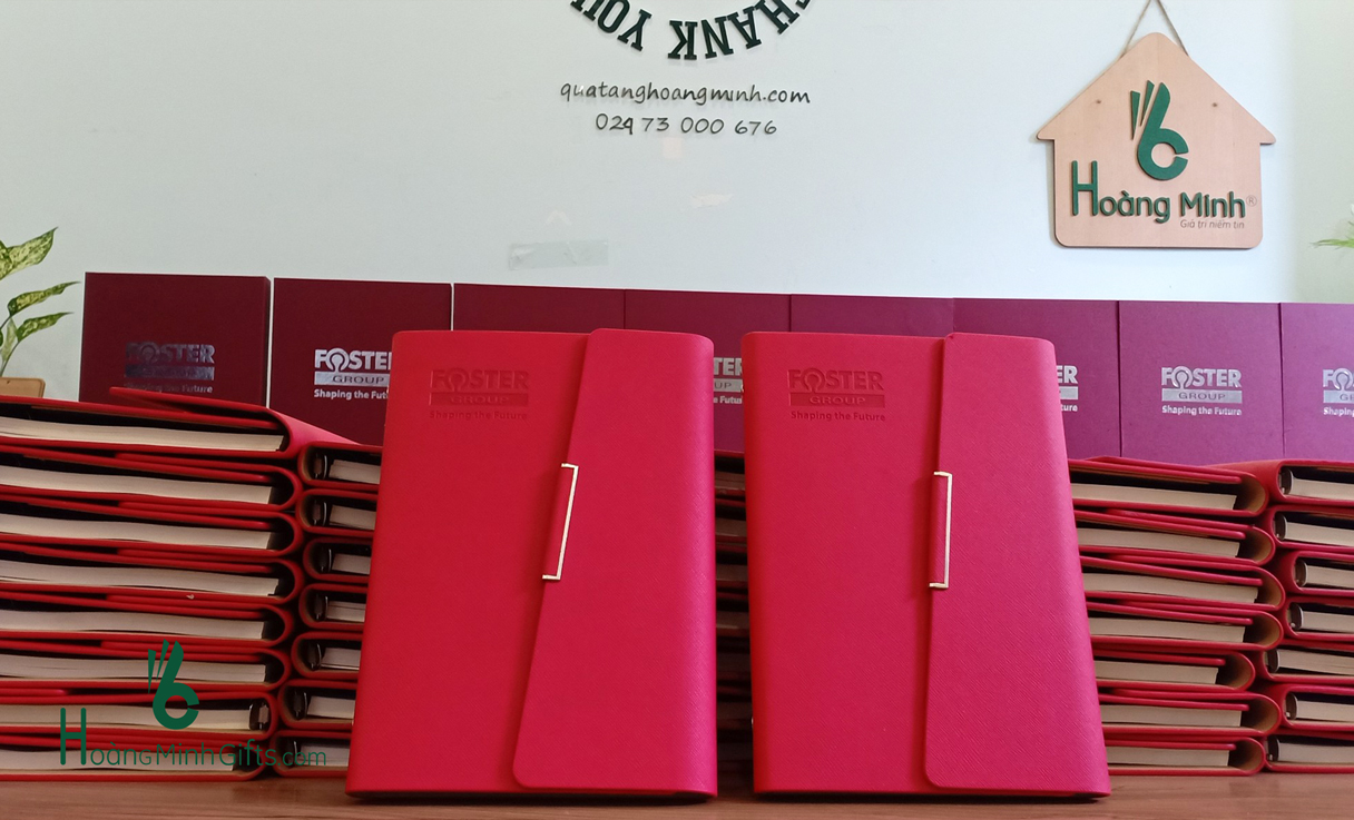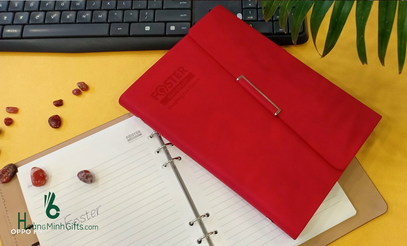 - Sổ bìa da A5 gáy còng, bìa sổ làm từ chất liệu simili cao cấp, in/ép/dập logo theo yêu cầu, còng sổ 6 khoen, ruột sổ 180 trang in ấn theo yêu cầu