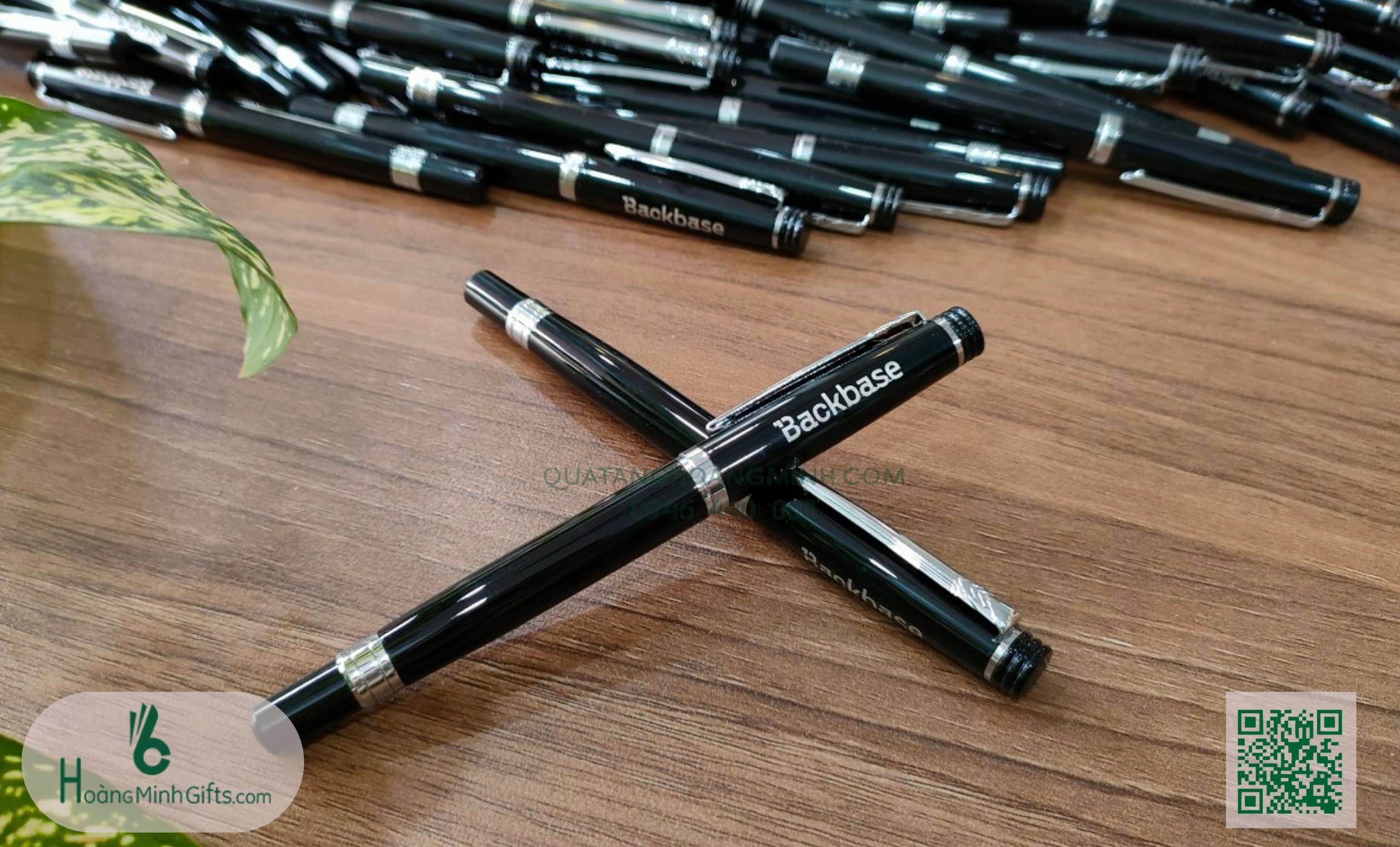 - Bút ký kim loại nắp mở cài bạc khắc lazer logo theo yêu cầu.