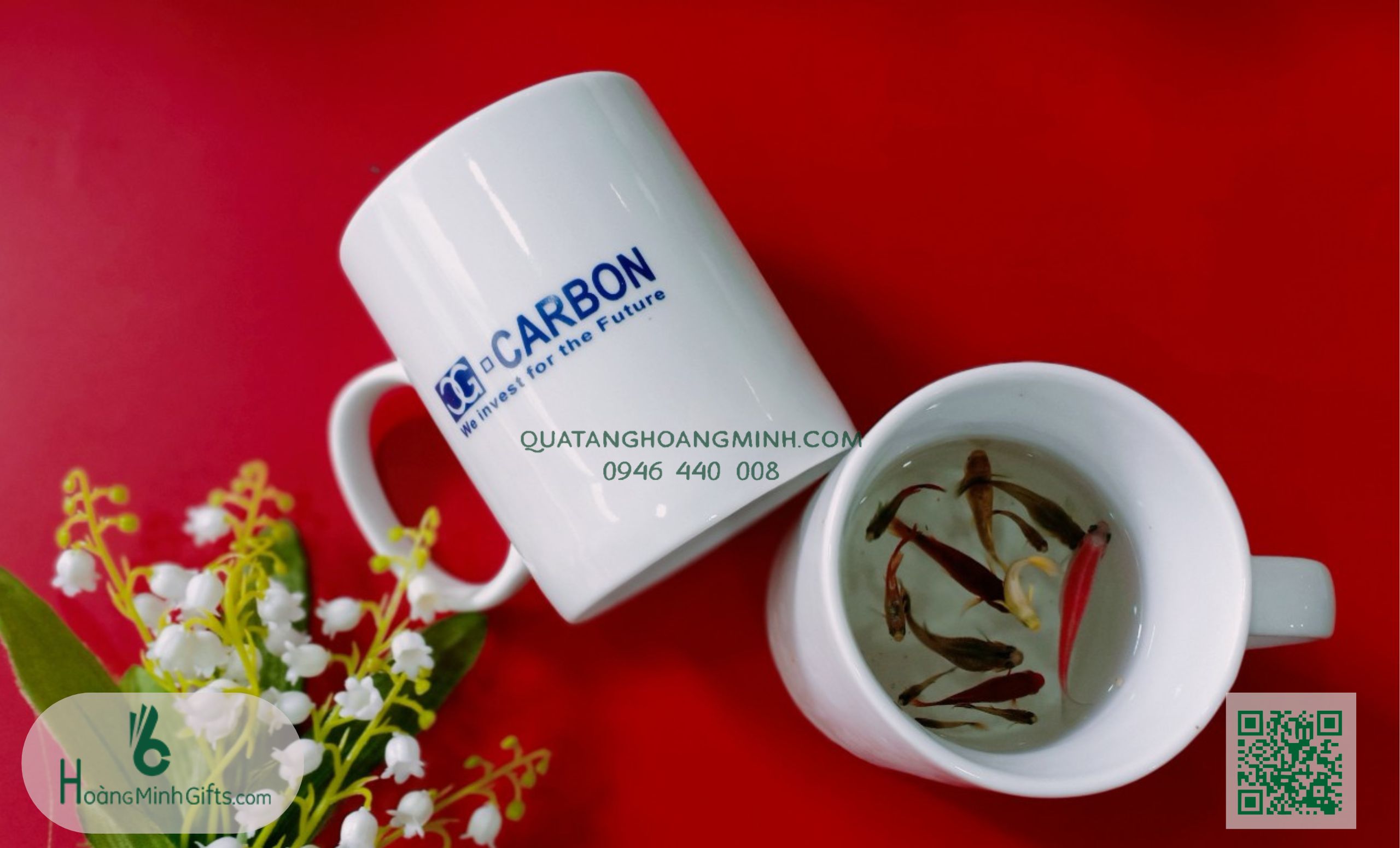 Cốc sứ in logo quảng cáo - khách hàng carbon