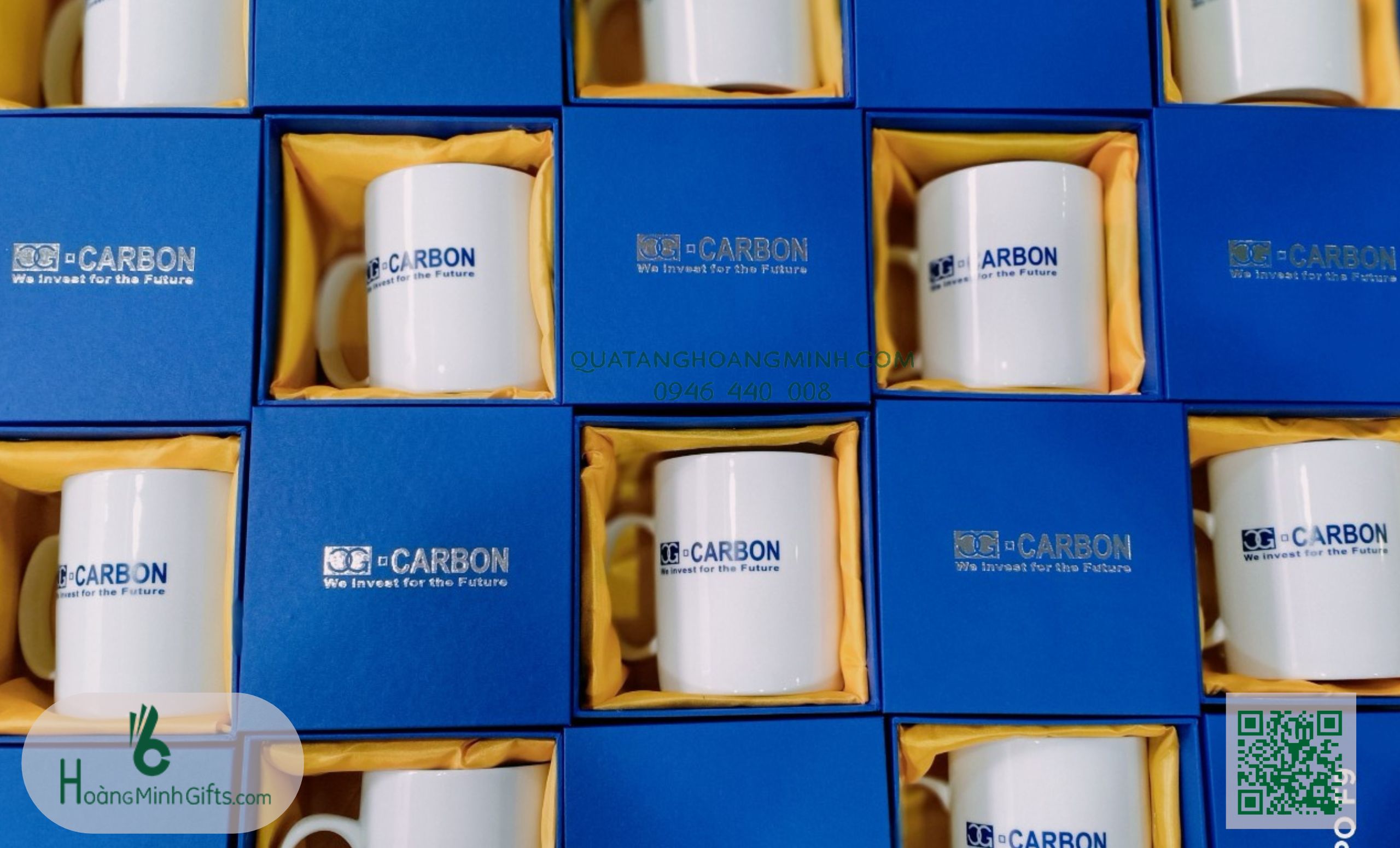 CỐC SỨ IN LOGO QUẢNG CÁO - KHÁCH HÀNG CARBON Cốc sứ cao cấp, thể tích: 380 ml, in ấn logo theo yêu cầu. Hộp đựng carton trắng hoặc hộp xi giấy mỹ thuật ép nhũ Logo theo yêu cầu. Số lượng tối thiểu đặt hàng 50 chiếc, thời gian sản xuất 7 -15 ngày tùy thời điểm.