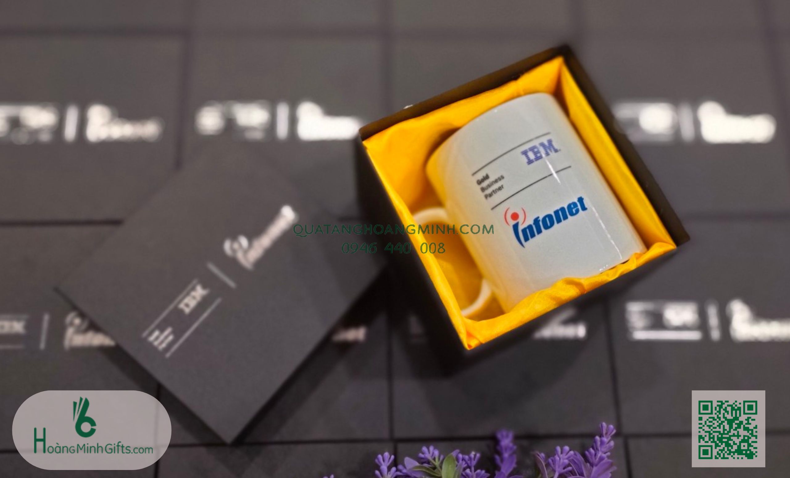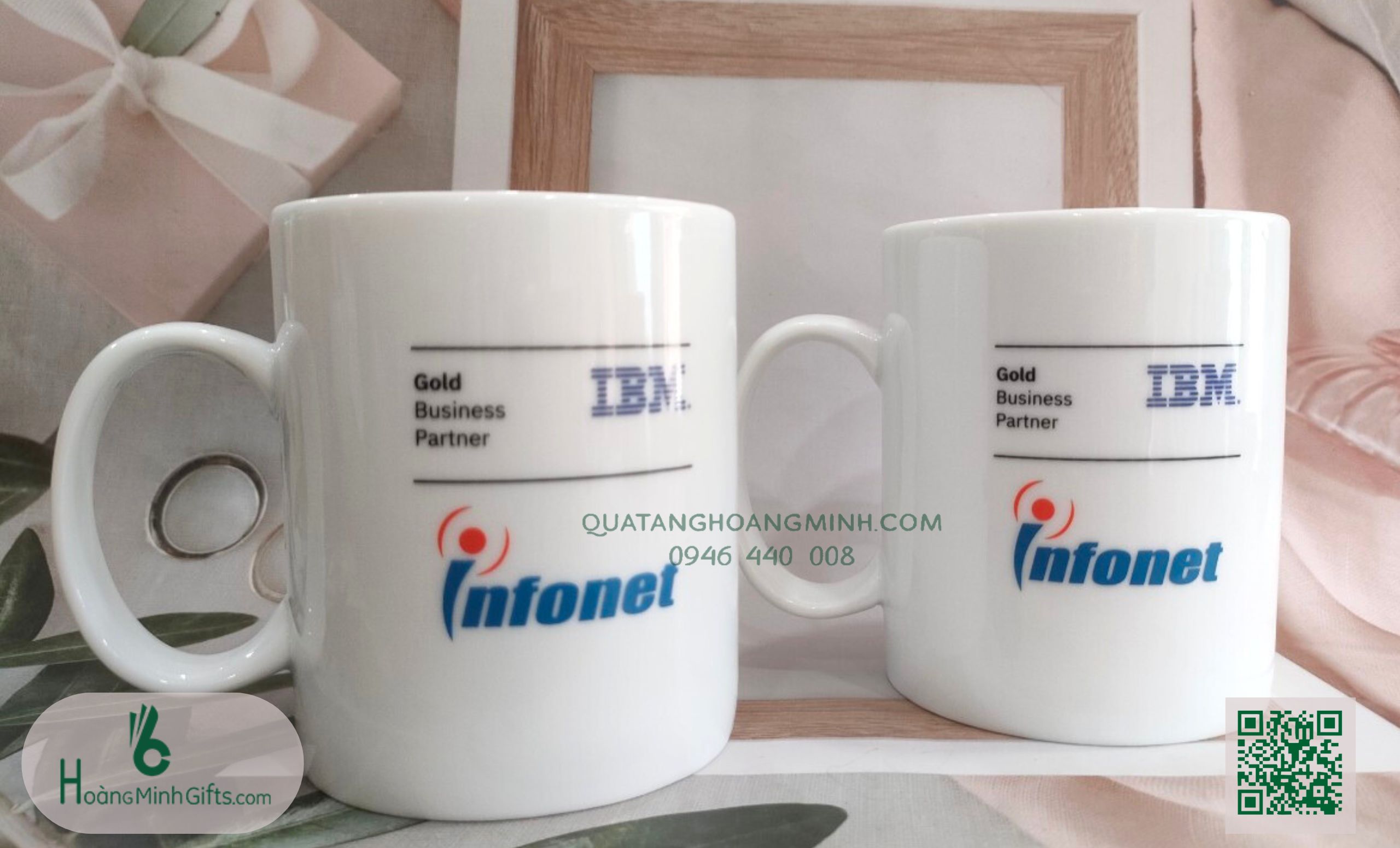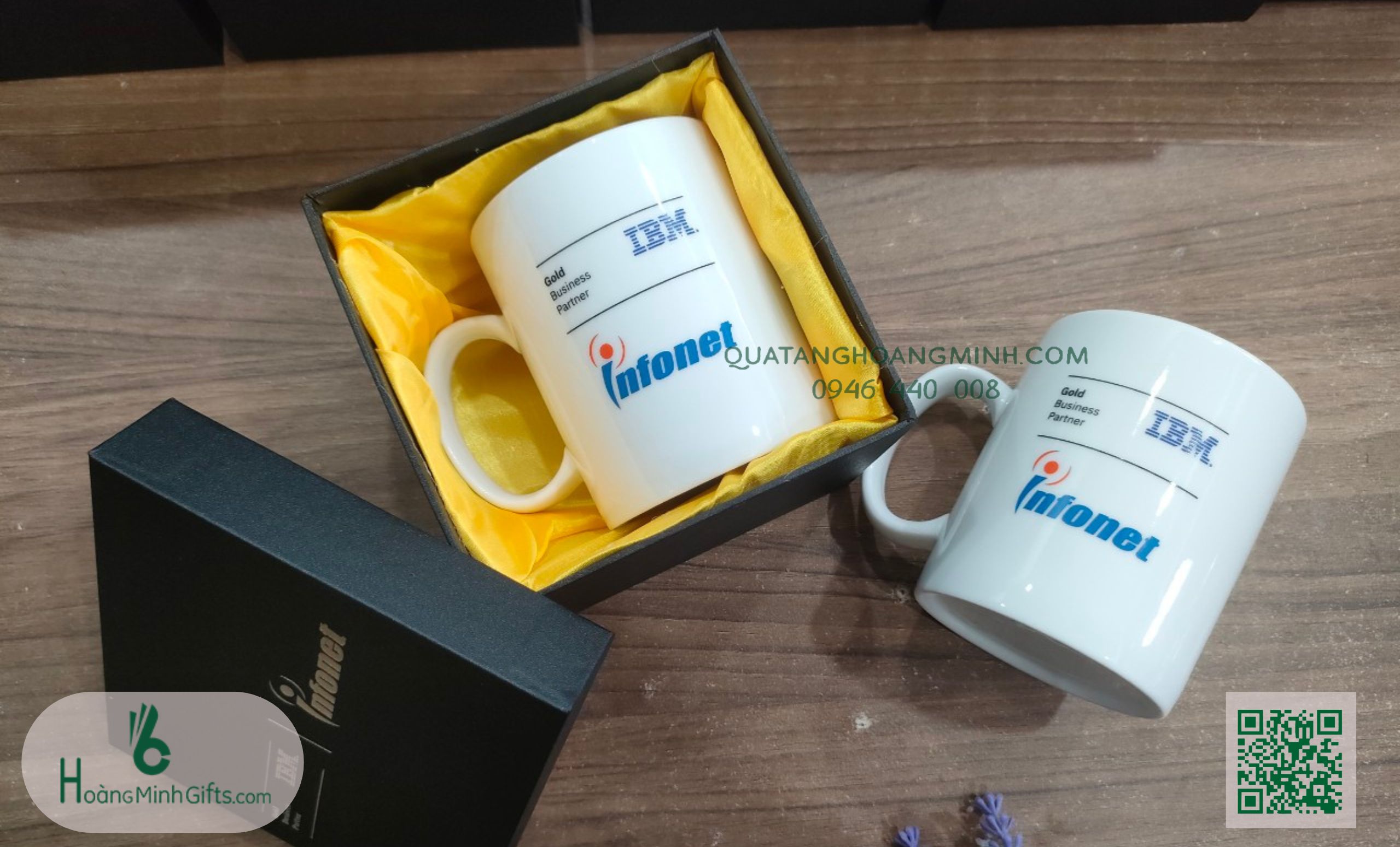 CỐC SỨ - KHÁCH HÀNG NHÂN MÃ Cốc sứ cao cấp, thể tích: 380 ml, in ấn logo theo yêu cầu Hộp xi giấy mỹ thuật ép nhũ Logo theo yêu cầu Số lượng tối thiểu đặt hàng 50 chiếc, thời gian sản xuất 7 -15 ngày tùy thời điểm