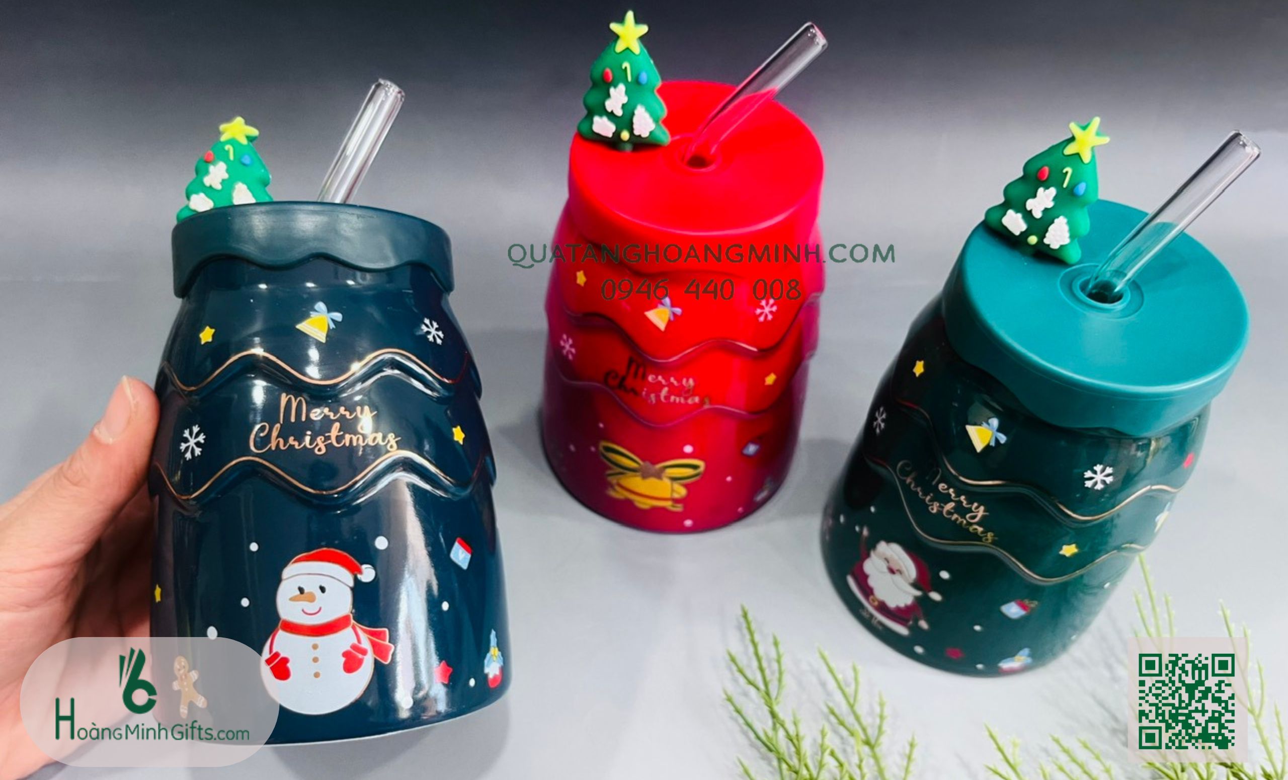 - Set cốc sứ noel hình dáng ngộ nghĩnh, nhiều màu sắc.