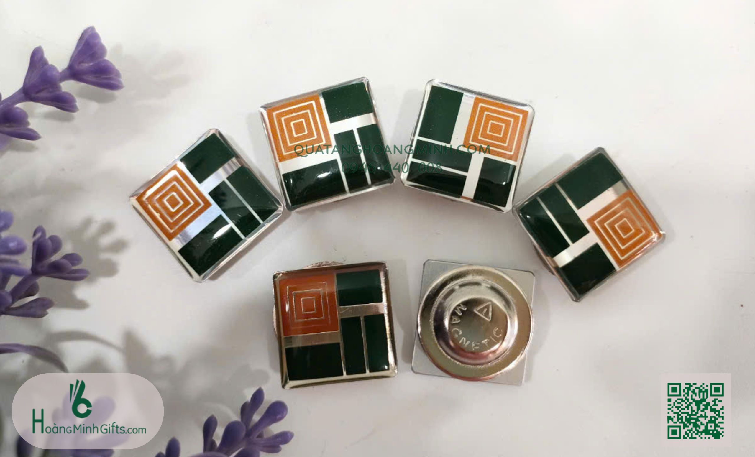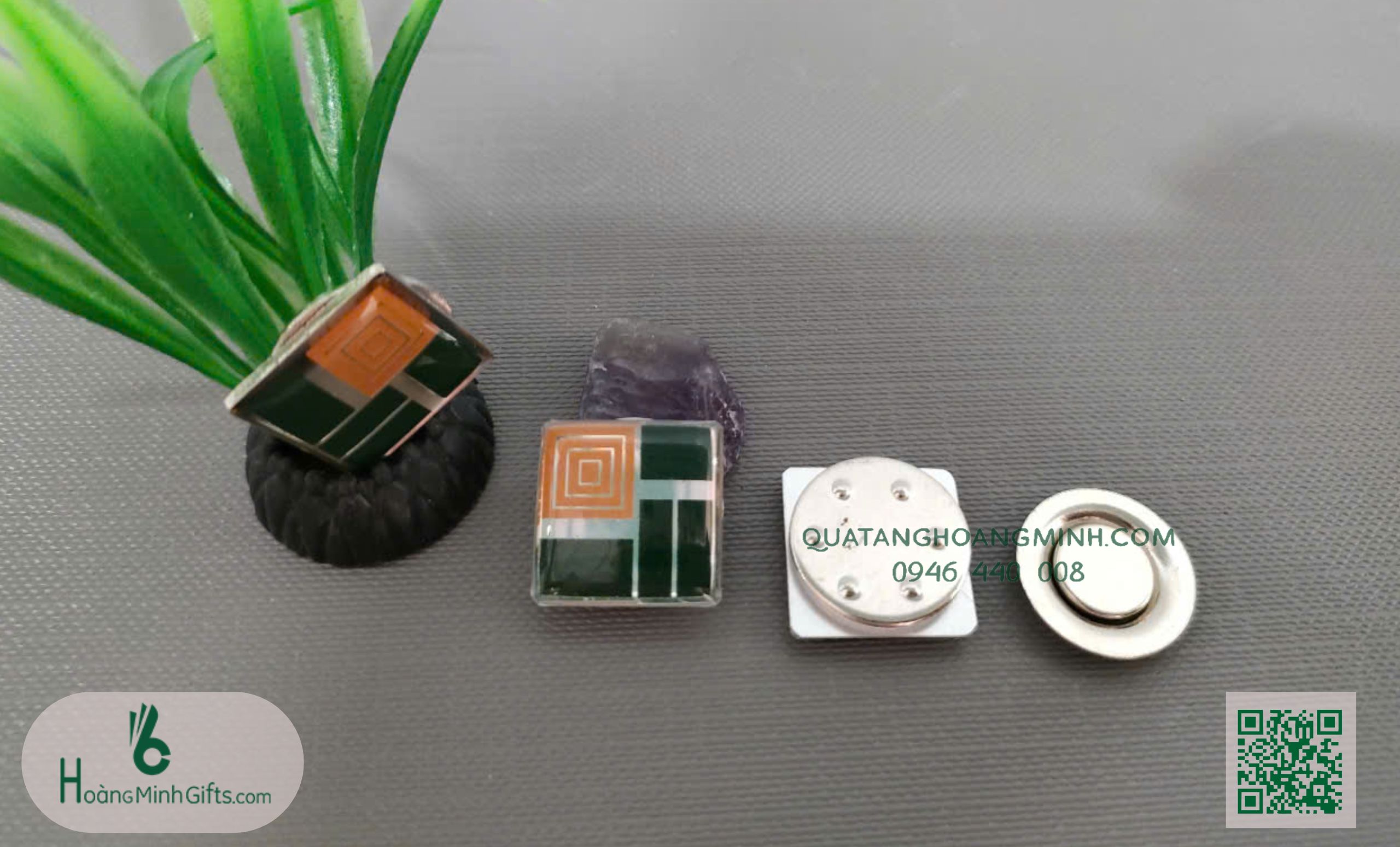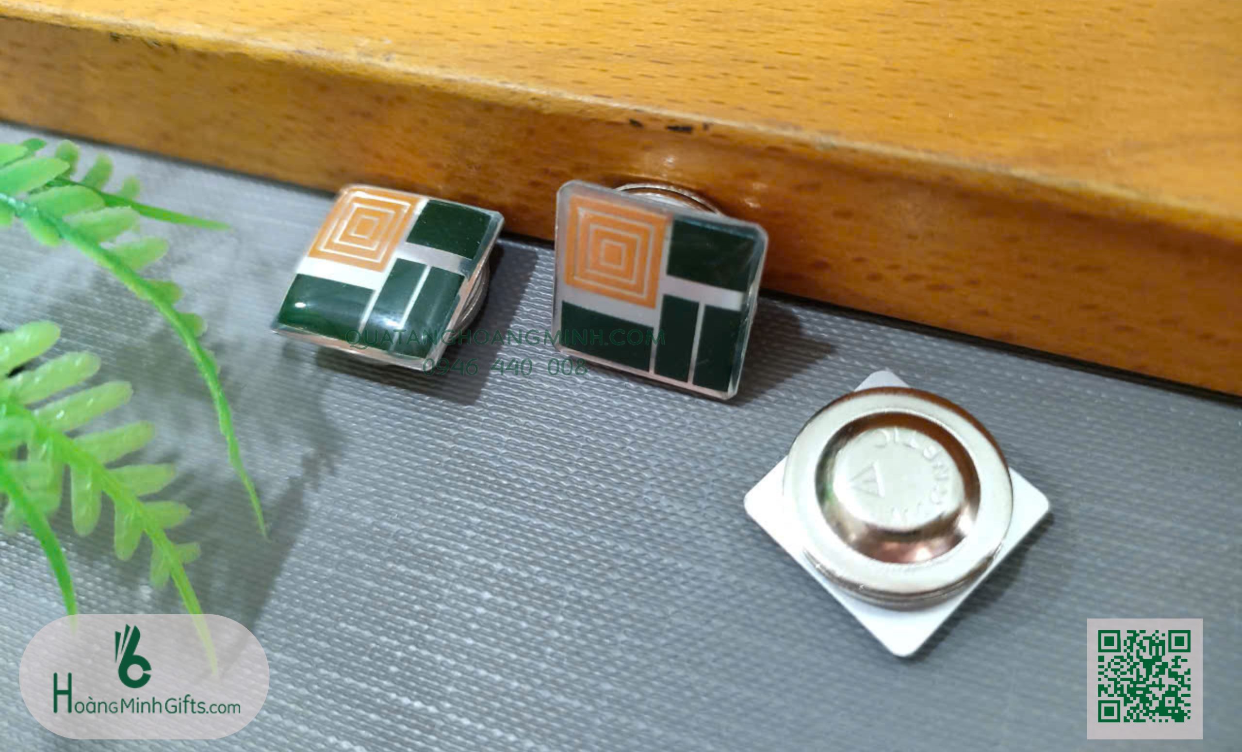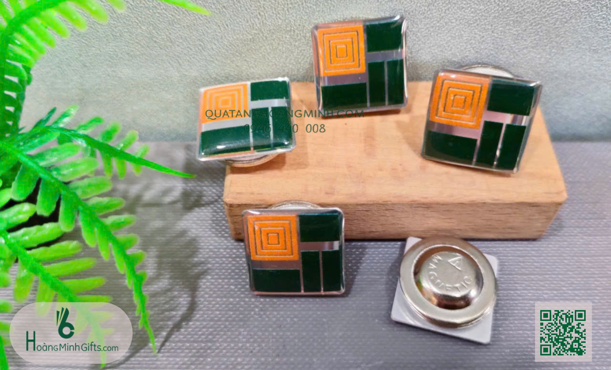 - Mặt sau: ghim băng vài, ghim cánh bướm, nam châm...