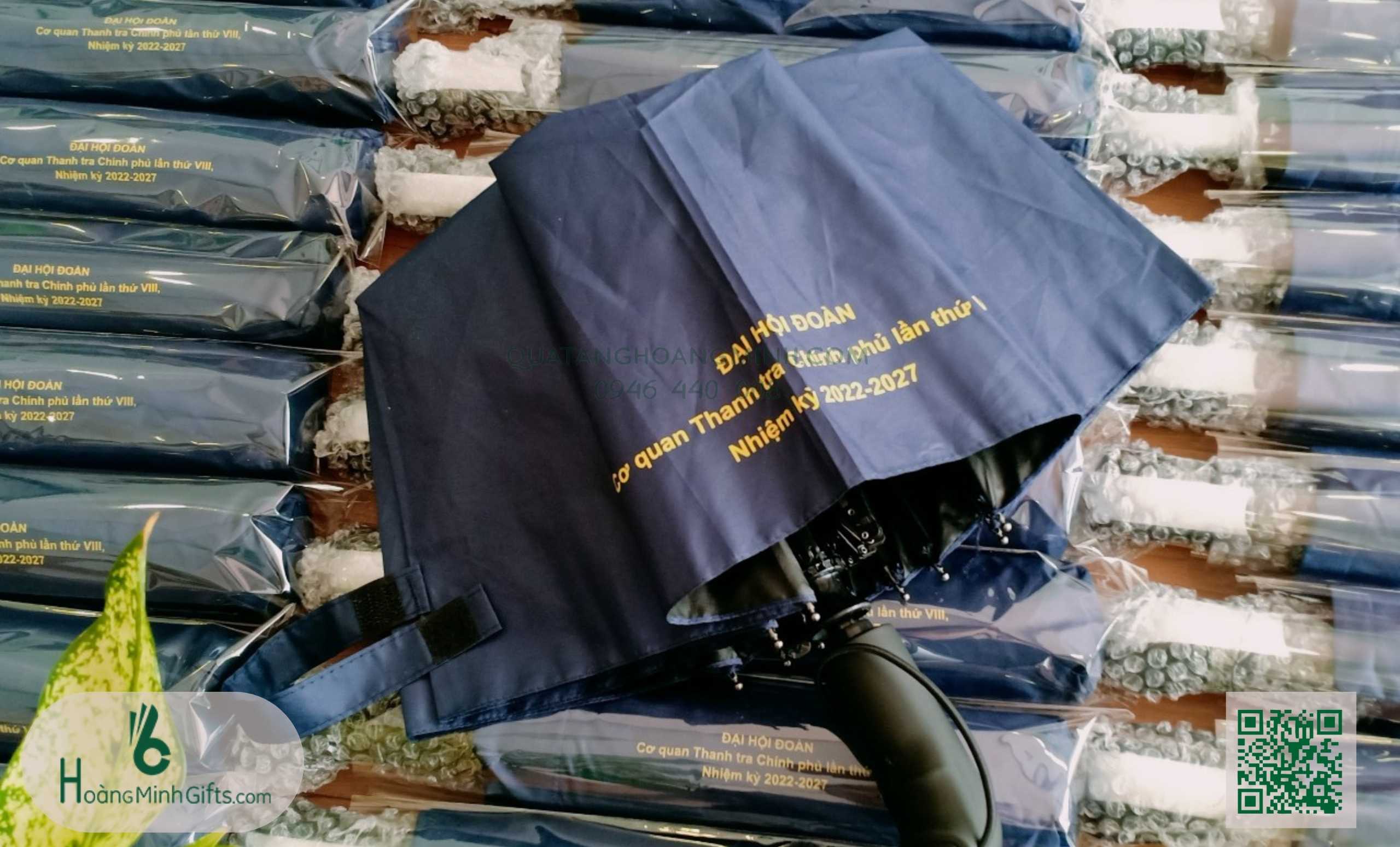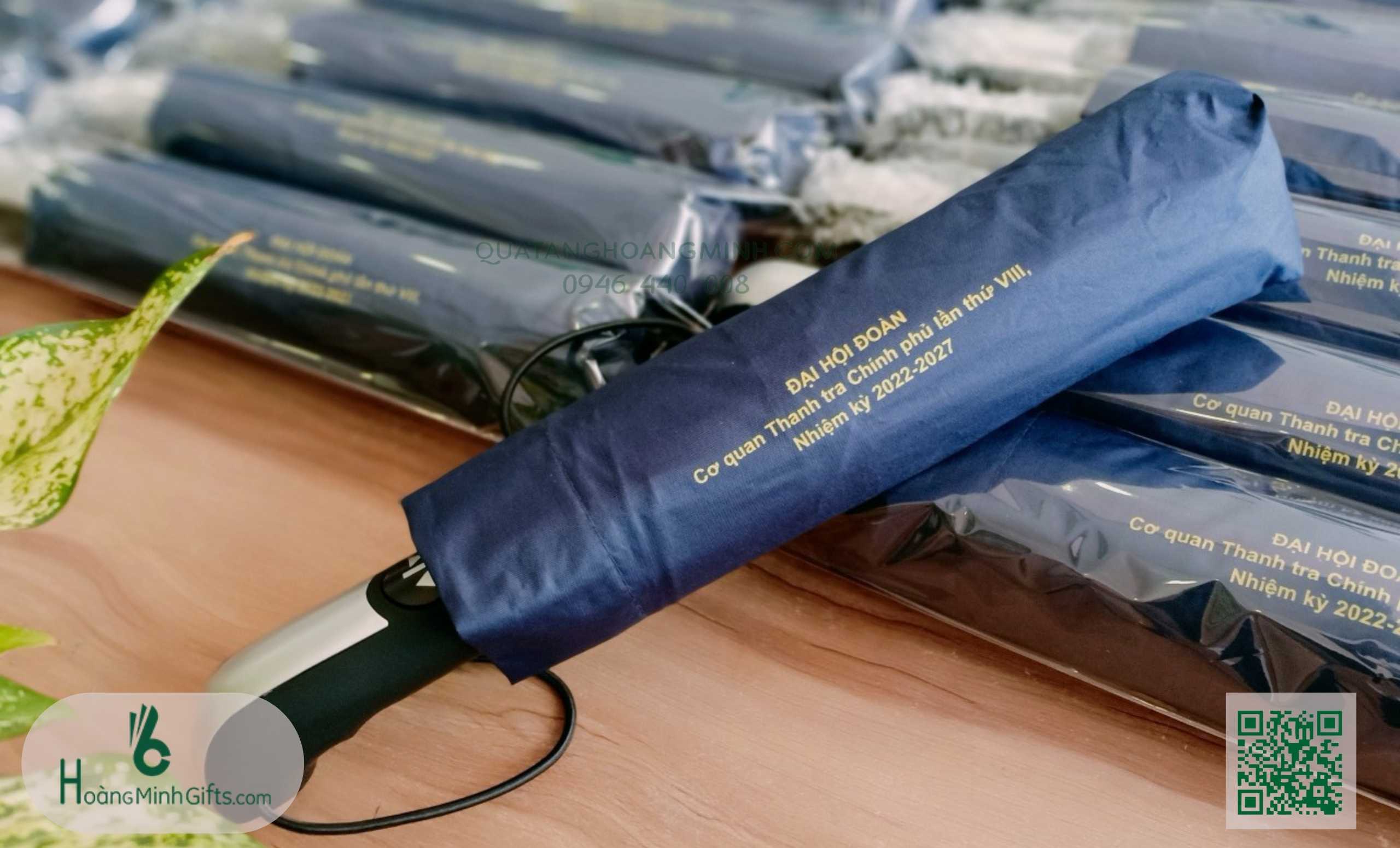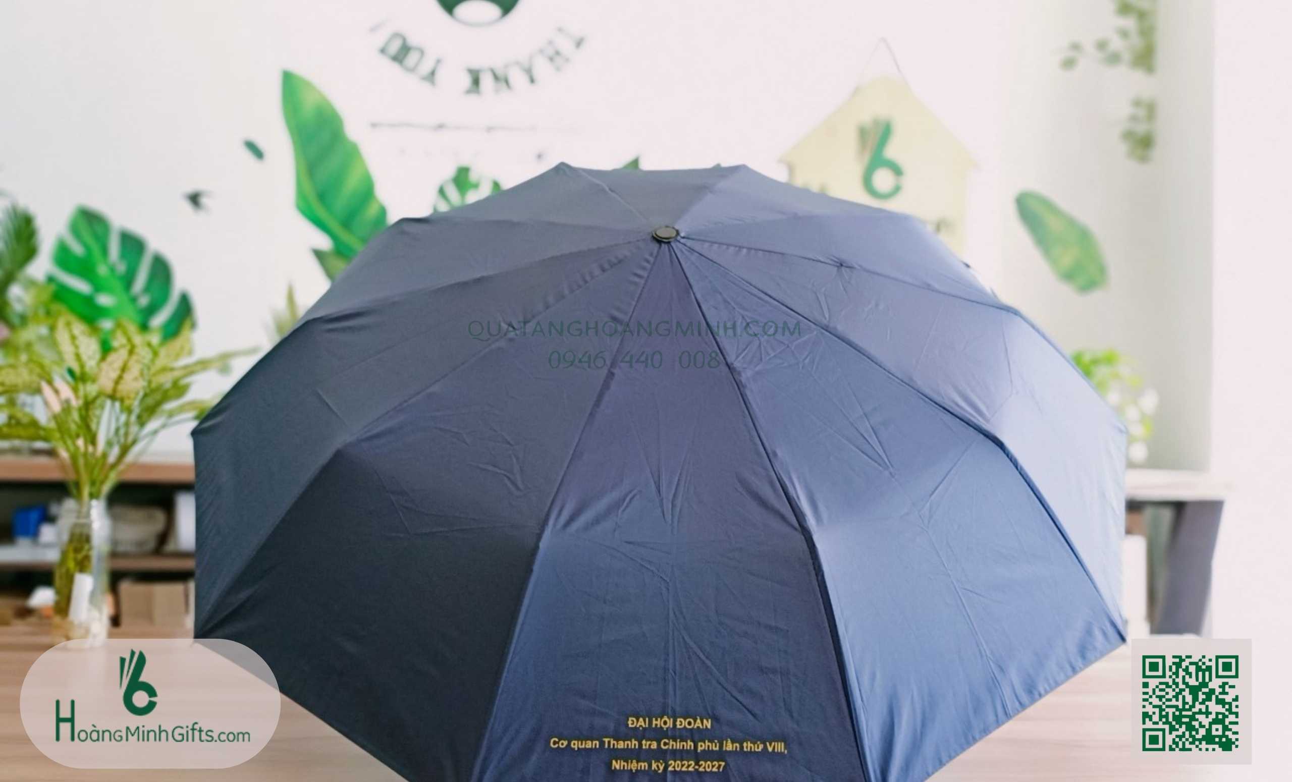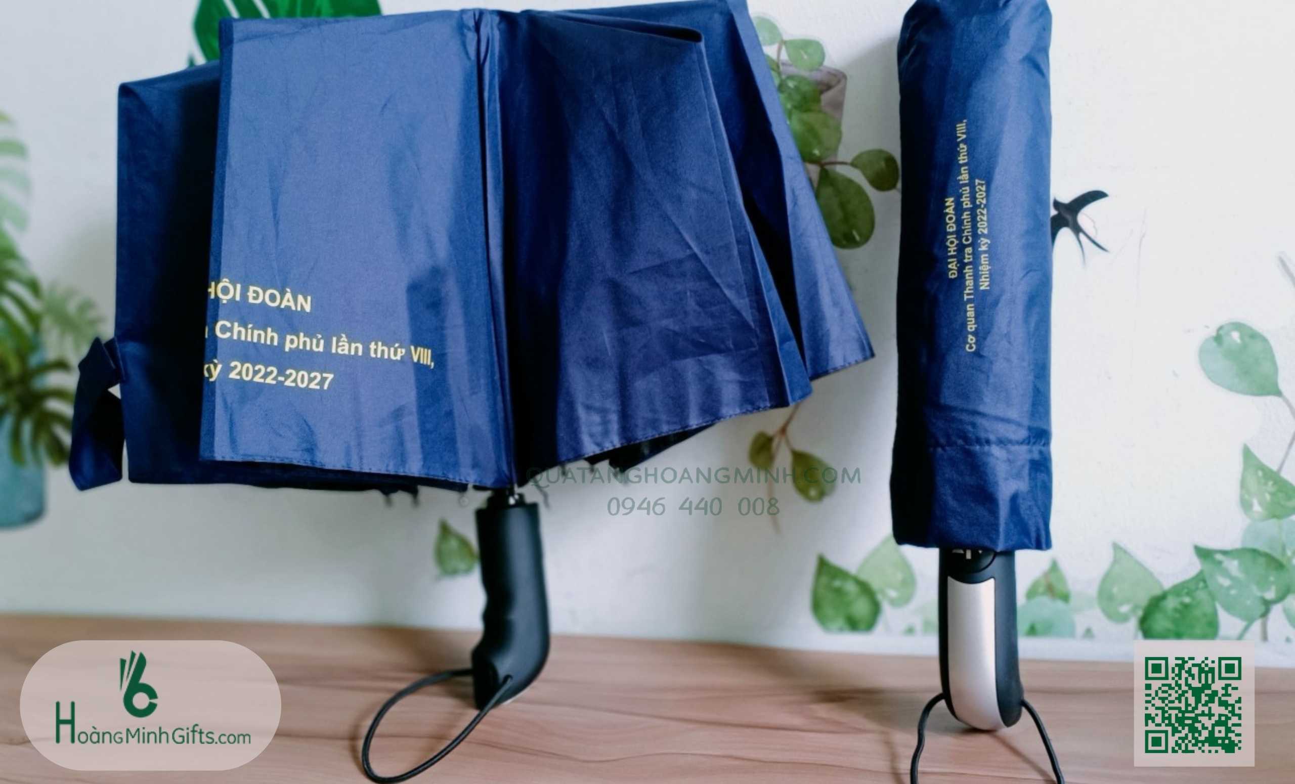 - Ô gấp 3 tự động 2 chiều, 10 cánh, thân và xương bằng kim loại, sơn tĩnh điện đen, chống rỉ, tay cầm nhựa có dây. Phụ kiện: vỏ ô in ấn theo yêu cầu,