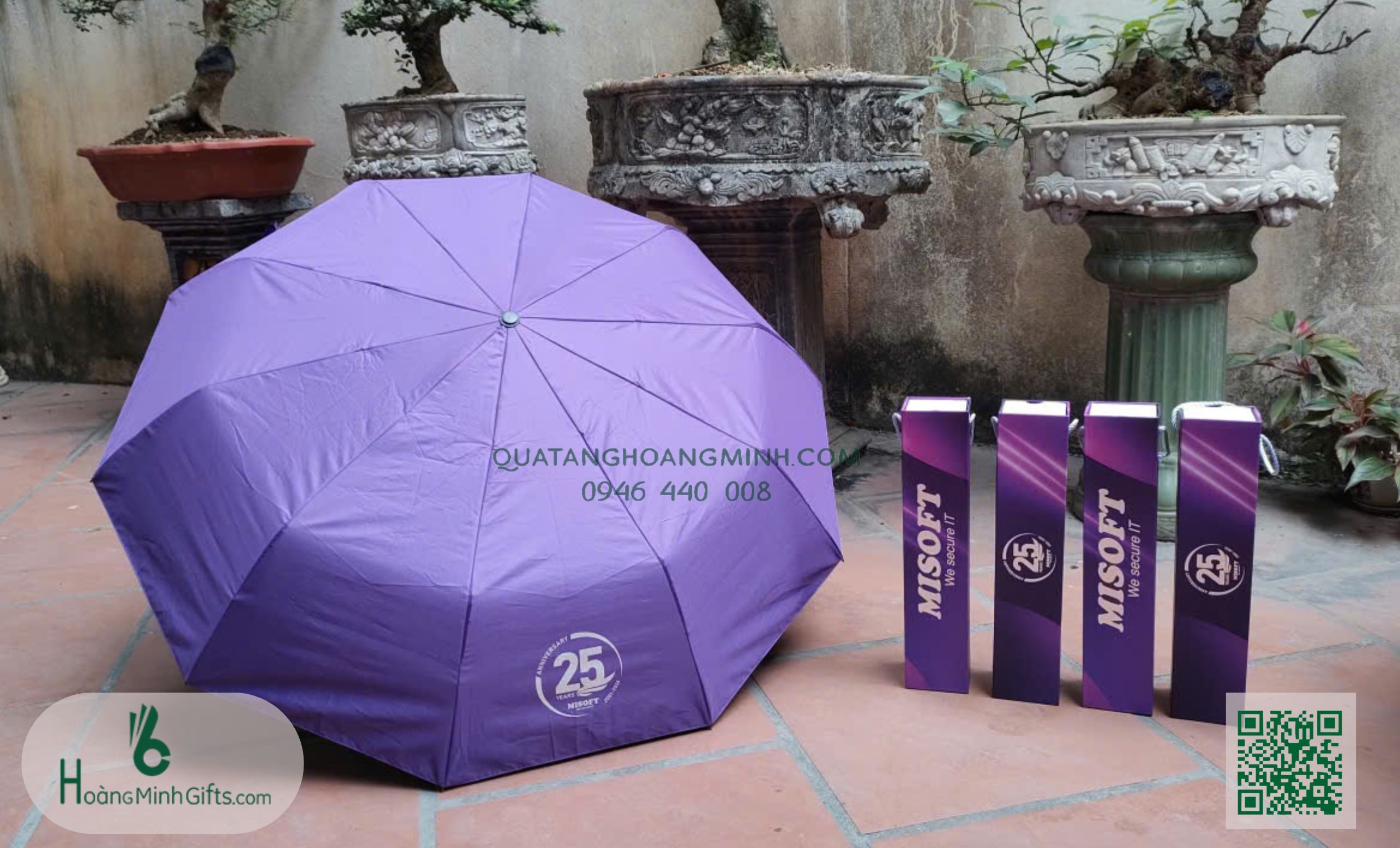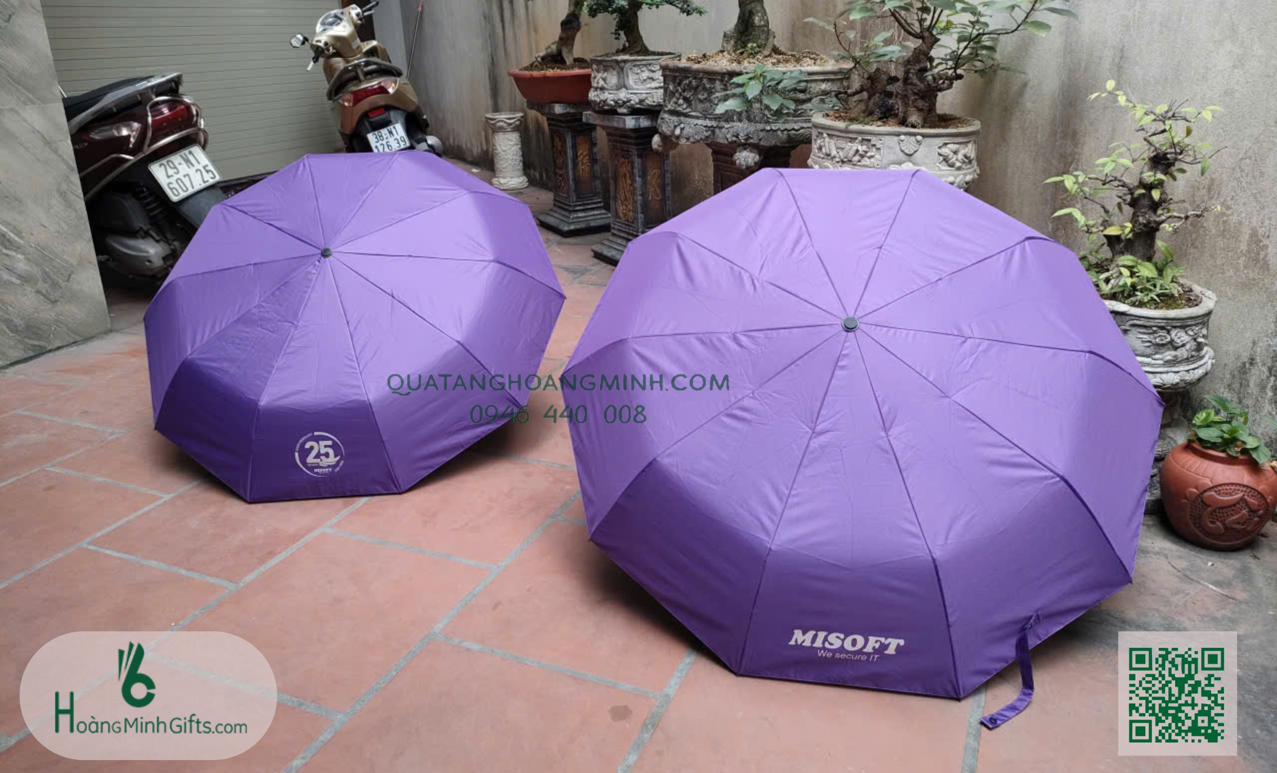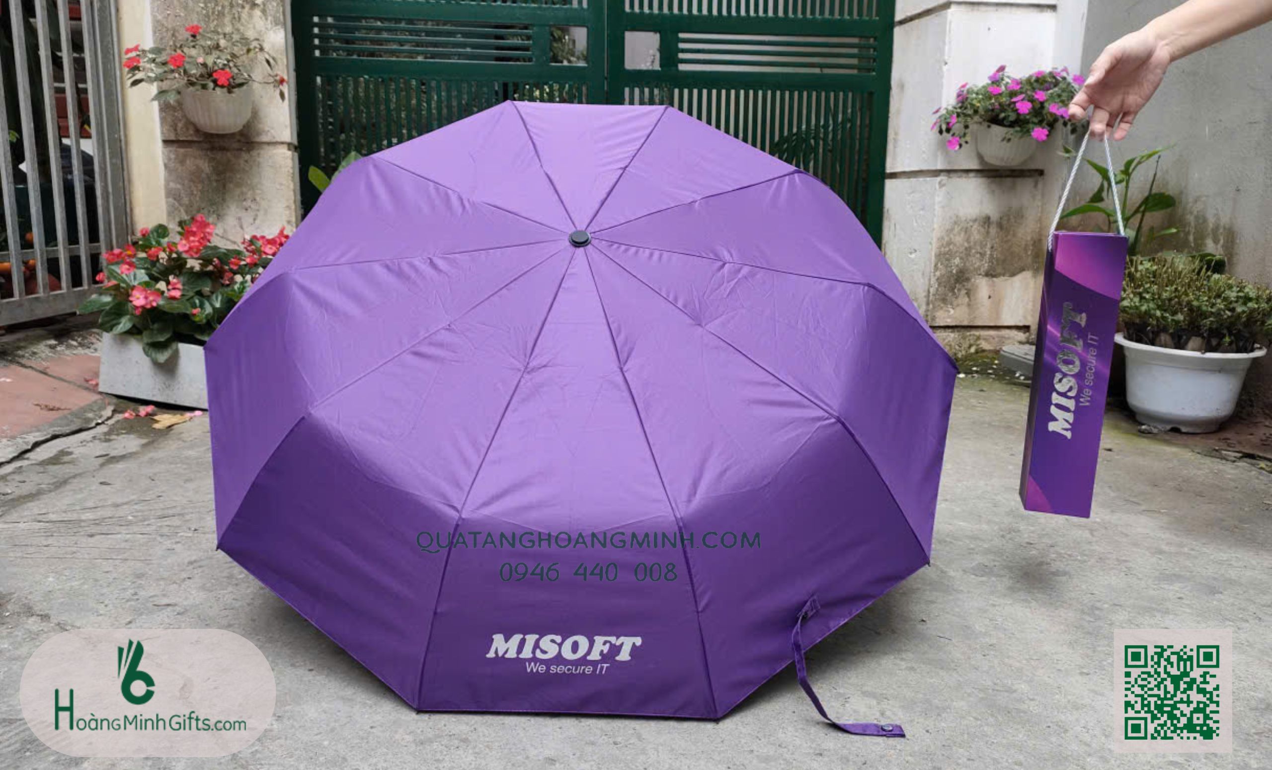 - Ô gấp 3 tự động 2 chiều, 10 cánh, thân và xương bằng kim loại, sơn tĩnh điện đen, chống rỉ, tay cầm nhựa . Phụ kiện: vỏ ô in ấn theo yêu cầu.