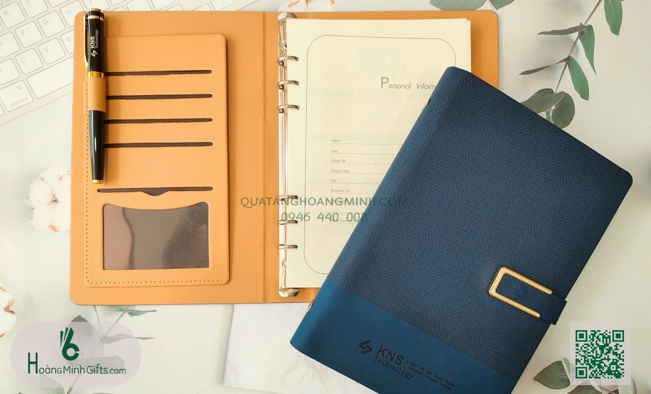 + Sổ da gáy còng A5 dập chìm, dập nhũ hoặc in màu logo trên bìa sổ theo yêu cầu.